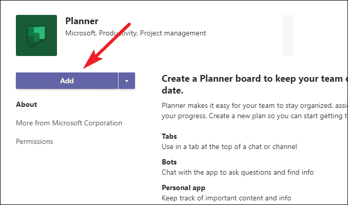 Before adding the Tasks app in Microsoft Teams, there’s one thing to remember. You won’t find the app under the name “Tasks”. Currently, you’ll find it under the name ‘Planner’.