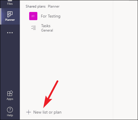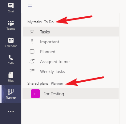 The Shared Plans section includes the tasks or plans from the Planner app that have been added to Teams.