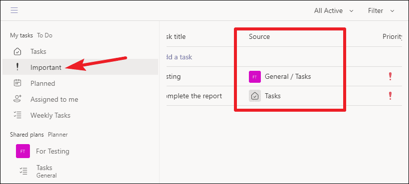The ‘My Tasks’ section also includes Important and Planned categories. The Important category shows all tasks you’ve starred, from To Do as well as tasks assigned to you in Planner.