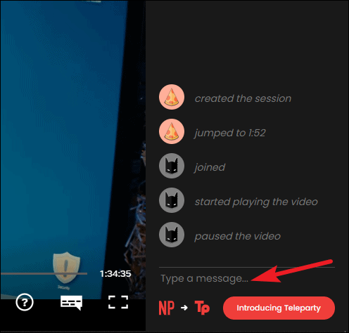 You can also chat with your friends while watching the video together. The chat panel appears on the right of the screen. It also shows updates about when someone joins the party, or pauses/ plays the video.