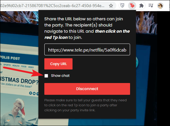 If you want to join a watch party someone else invited you to, you first need to install the Teleparty extension on your browser. Then, click the link you received for the watch party.