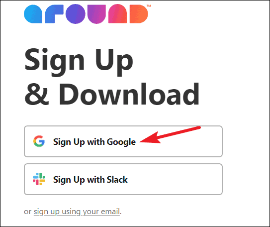 As the software is currently in the invite-only phase, you first need to sign-up for the waitlist to download it. You can sign up with Google, Slack, or using your email address. Click the option that suits you the best. For the sake of this guide, we’ve chosen ‘Sign Up with Google’.