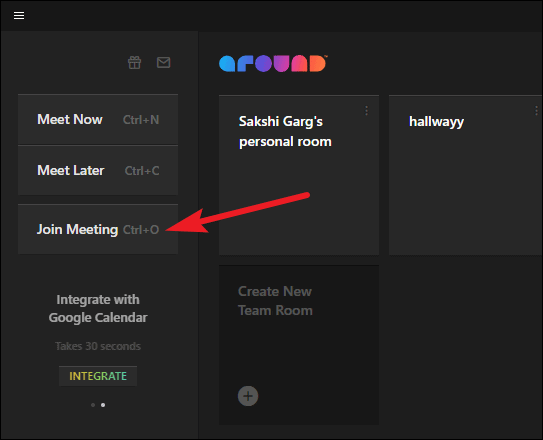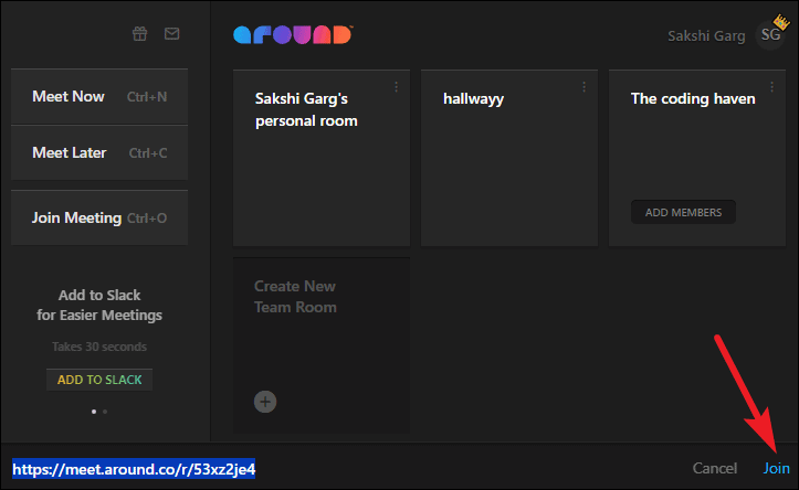 To join someone else’s meeting on Around, click the ‘Join meeting’ button. Also use the ‘Join meeting’ button to join the meeting you created using the ‘Meet Later’ button.