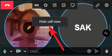 Sometimes looking at your own video can become too exhausting. You can hide your video bubble without turning off your camera. Go to your video and right-click on it. Then, click ‘Hide self-view’.