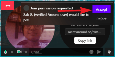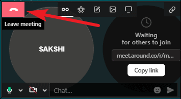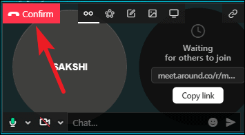 Around makes it really easy to share the meeting link with other people. You don’t have to go through multiple clicks to get the meeting link. Just click the ‘Copy link’ button right there next to your video.