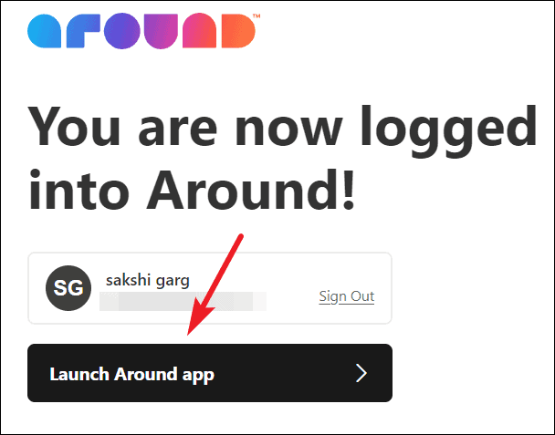 It’ll redirect to the login page on the browser. Log in to your account. If you were already logged in on the browser, you won’t have to enter your login details again. Just click the ‘Launch Around’ button, and it’ll log in to your account on the desktop app.