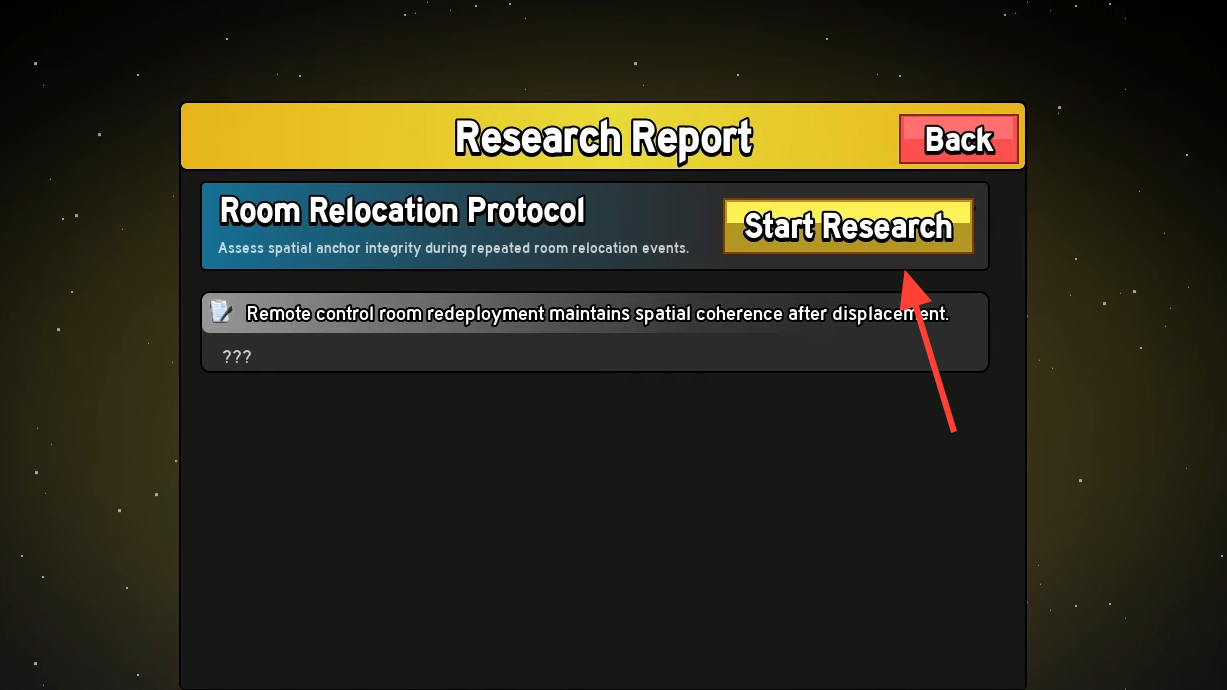 Step 4: Return to the Admin Panel and pay the cost to unlock Room Relocation Protocol.