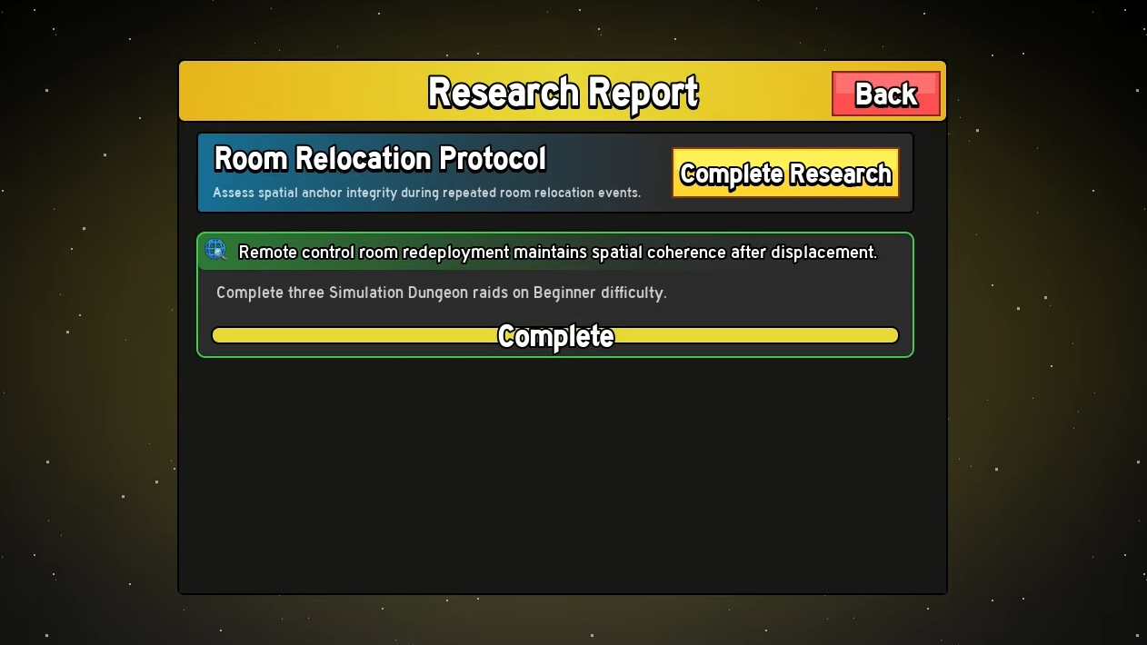 - Research task (what you do in-game, usually inside Simulation Dungeons).