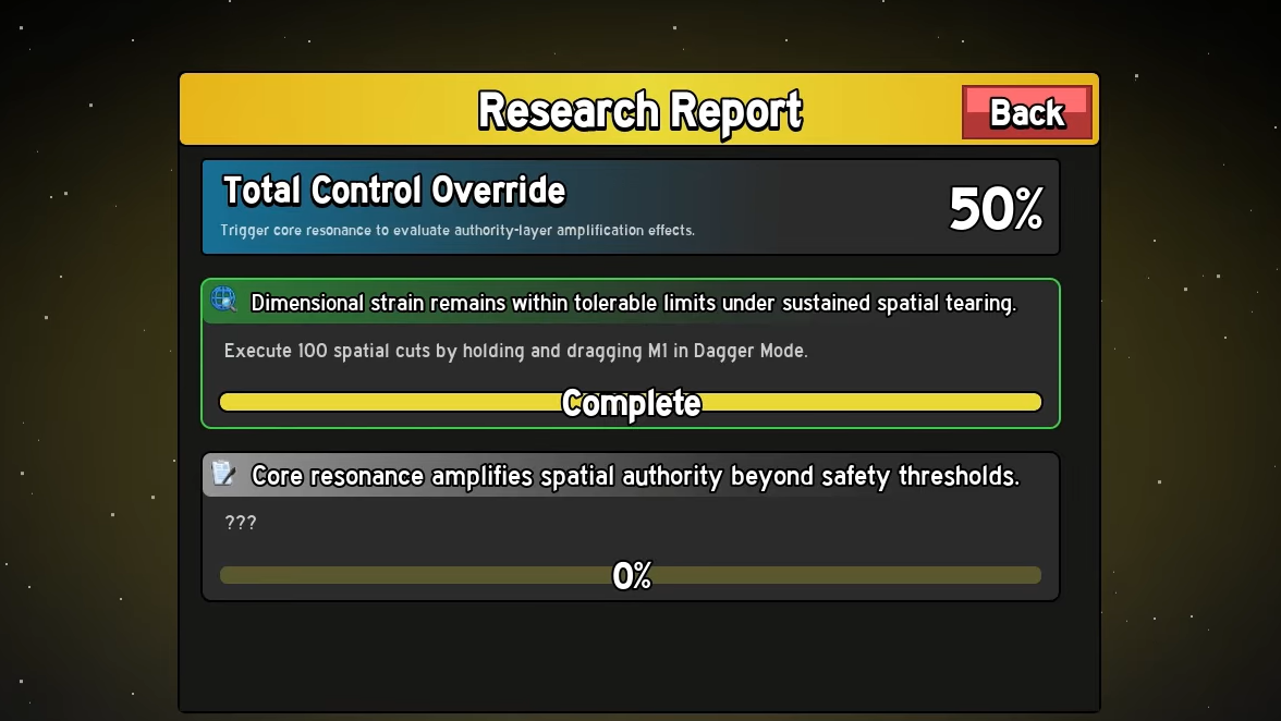 Once unlocked, holding and dragging M1 while in Dagger Mode fires spatial slashes that can cut through targets. This also flips the internal “cutting is possible now” flag for later cutting quests.