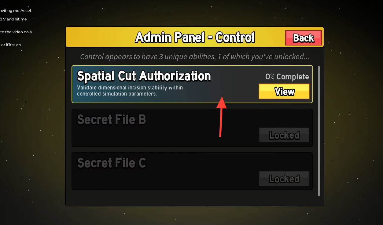 Control Admin Panel Quest 1 (Spatial Cut Authorization)
