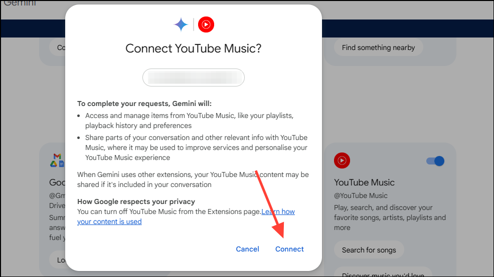 - Make sure you're signed into the Google account you want to use with the Gemini YouTube Music extension.