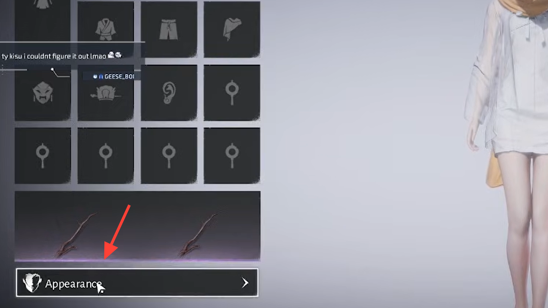 Step 2: Move to the Appearance option at the bottom of the wardrobe list. Confirm to switch from outfit view to your character’s base appearance.