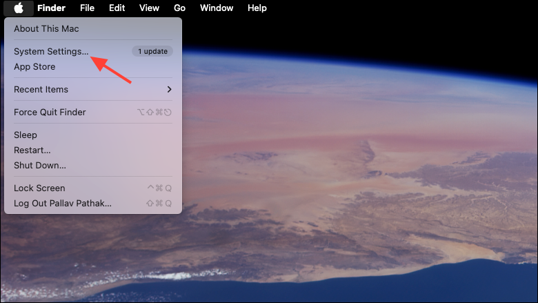 Step 1: First, ensure your Mac stays awake so Photos can complete indexing. Photos uses background processes such as mediaanalysisd, photoanalysisd, and photolibraryd to analyze your library. Click the Apple logo at the top left and then click on "System Settings".