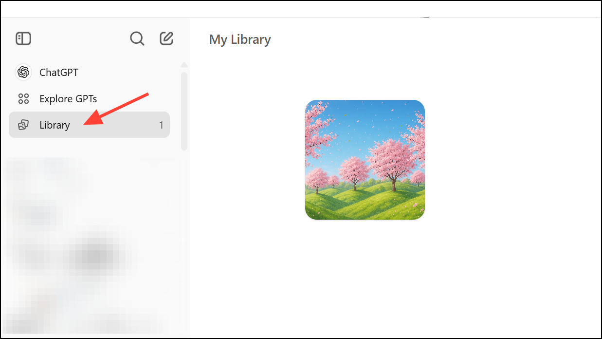 Step 2: In the sidebar, look for the new Library section, which is listed beneath Explore GPTs.