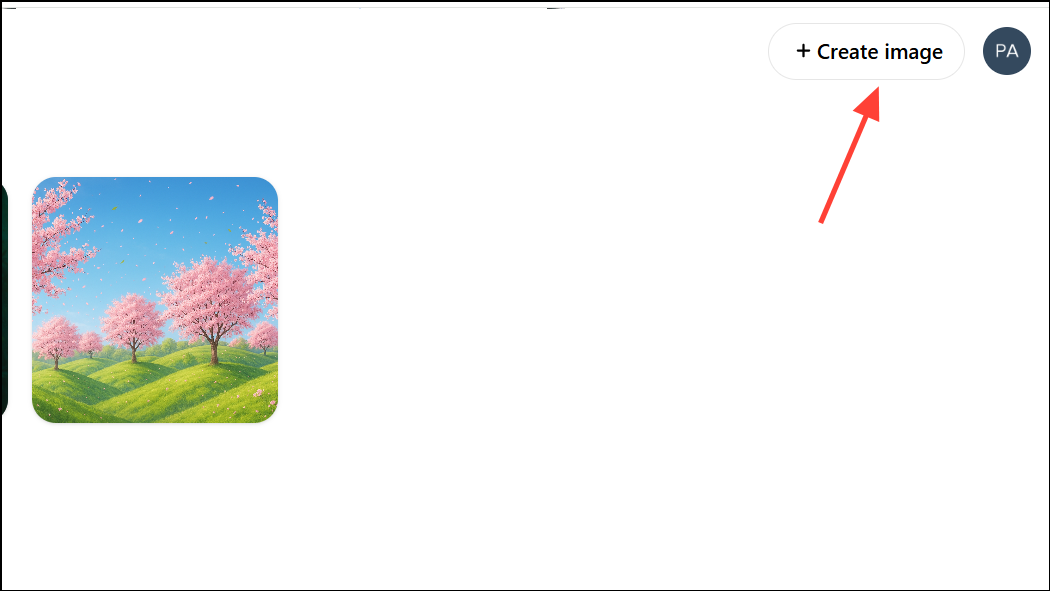 Step 2: To quickly create another image from within the Library, use the Create image button at the top right of the Library screen. This initiates a new image generation workflow without leaving your gallery.