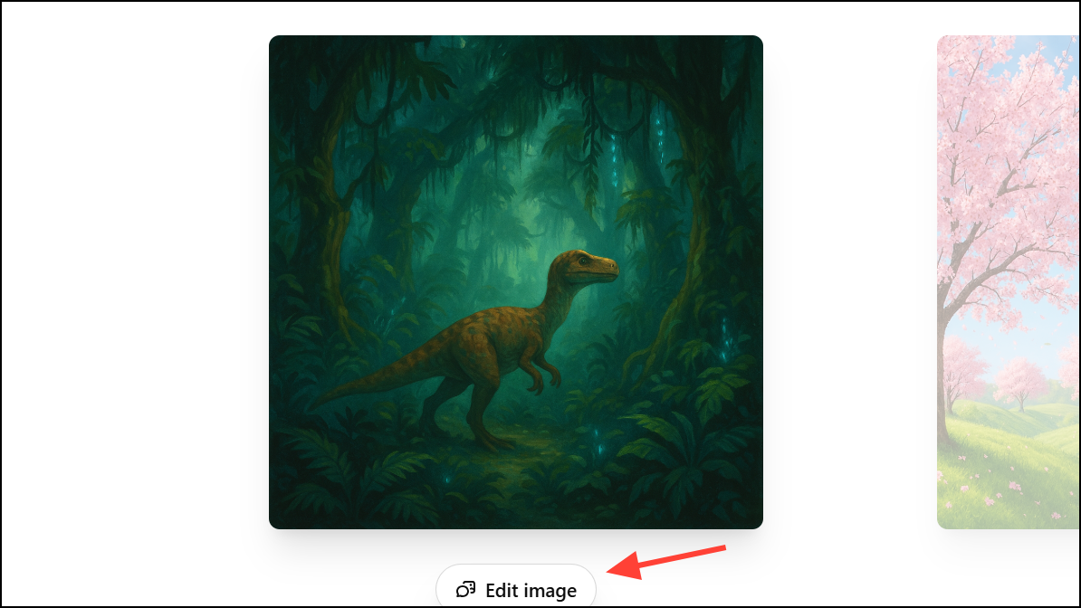 Step 2: To edit an image, use the Edit button. This lets you provide a new prompt for modifying the existing image, such as changing colors, adding objects, or altering the style.
