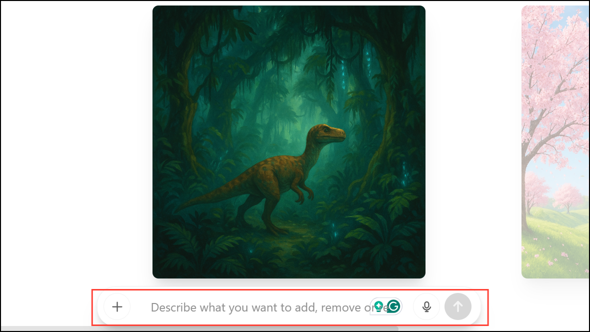 Step 1: Generate a new image by starting a conversation with ChatGPT and describing what you want to create. You can also upload an image from your device. Once the image is generated or uploaded, it is saved automatically to your Library—no extra steps required.