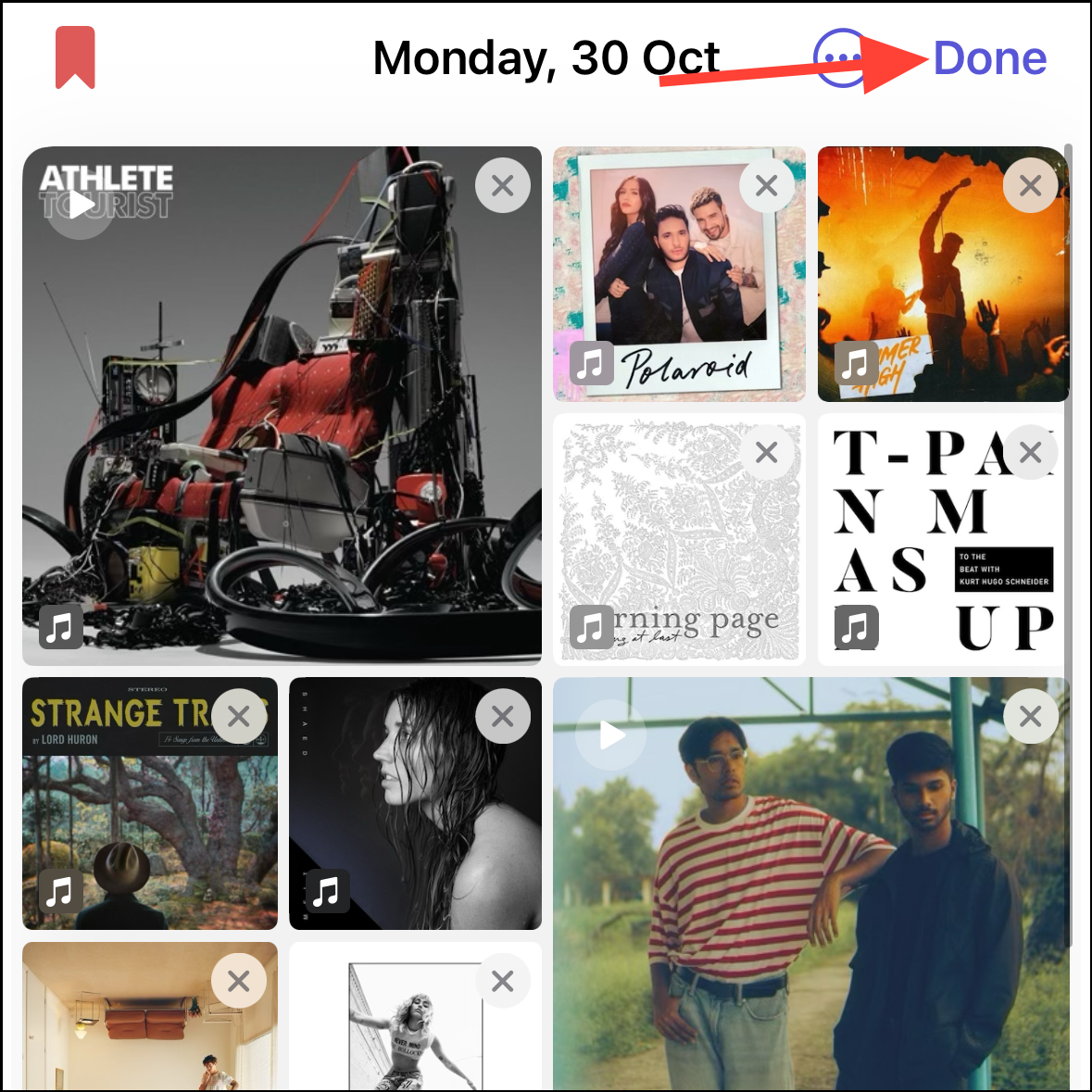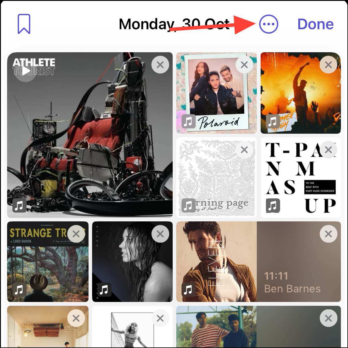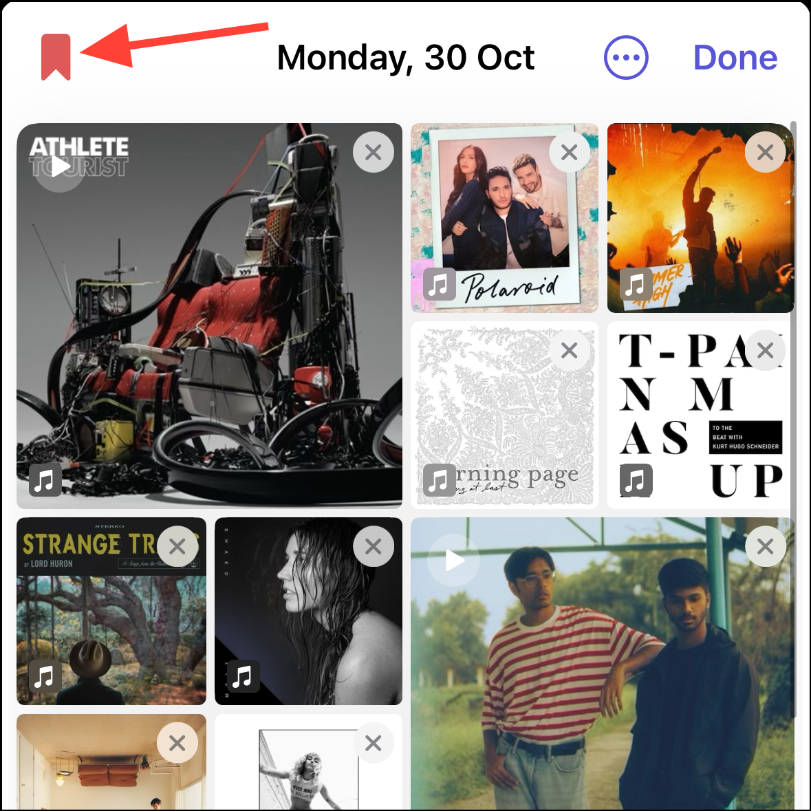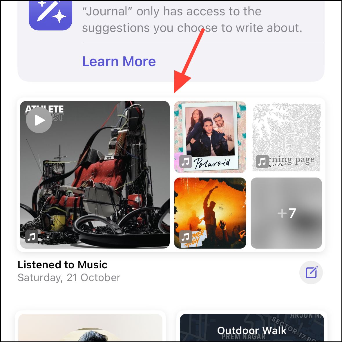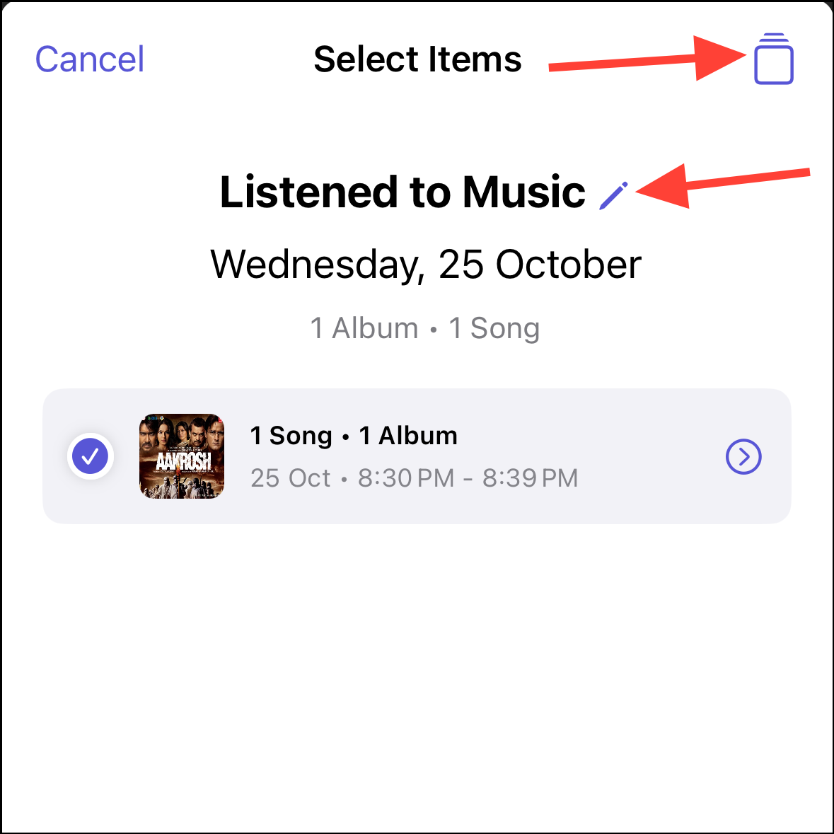 - Depending on the suggestion, you can further choose what to include. For example, if it's a prompt from the 'Music' app that includes the songs you listened to, you can select which songs you want to include.
