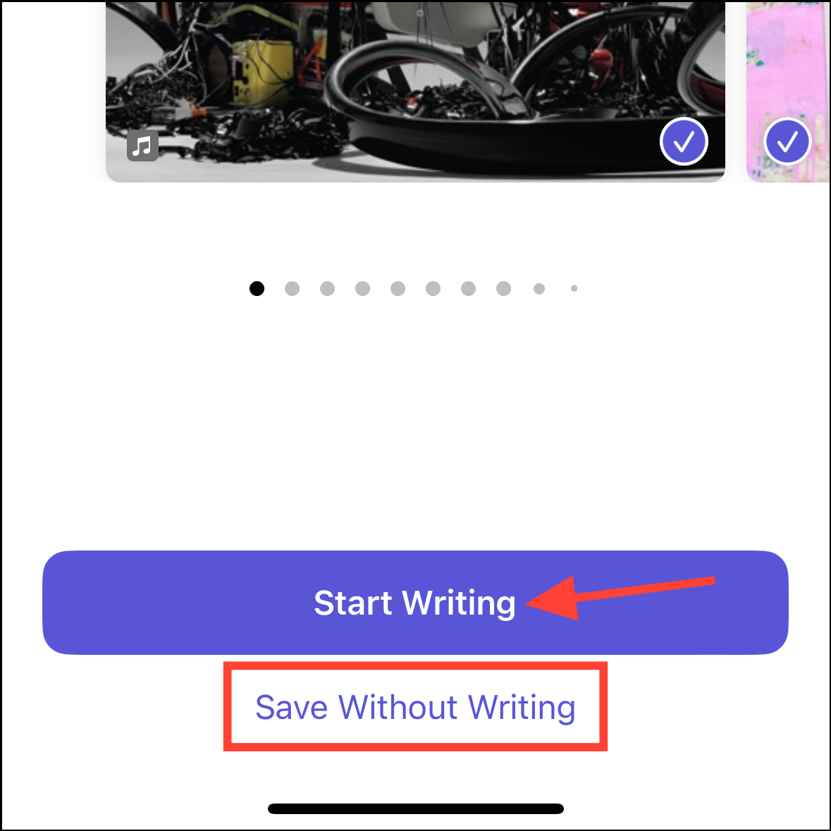 - Then, tap on 'Start Writing' at the bottom. You can also save a suggestion as your journal entry without writing about it.