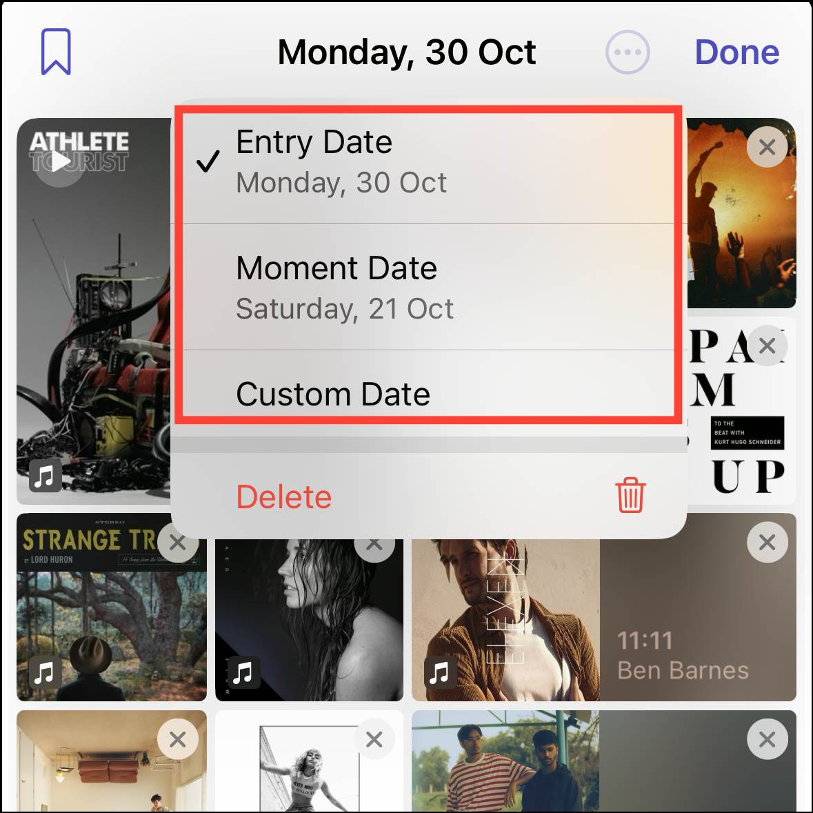 - You can also remove any data you have added to the entry, like music, by tapping the 'X' in the top-right corner of the thumbnail. But remember that this action cannot be undone.