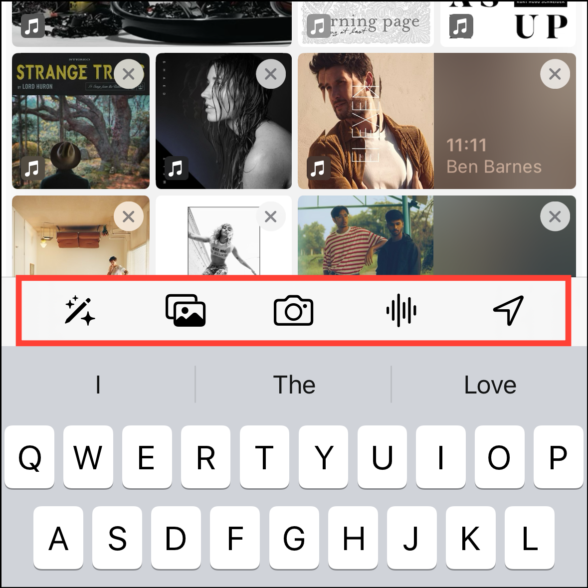 - You can write your thoughts here or add moments, photos, videos, audio recordings, and location to your entries by tapping on one of the five controls above the keyboard.
