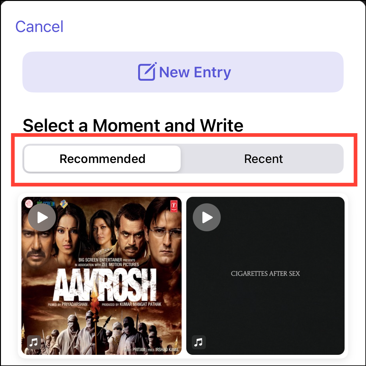 - To use a writing prompt for Reflection, scroll down in the 'Recommended' tab and tap on the prompt you'd like to use.