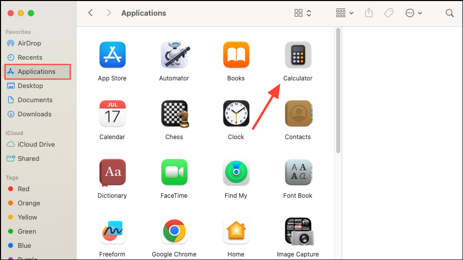 Step 1: Launch the Calculator app by navigating to the /Applications folder in Finder. Double-click the Calculator icon to open the app.