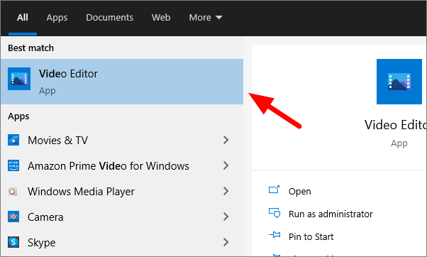 Search for Video Editor in the Start Menu and then click on it to access.