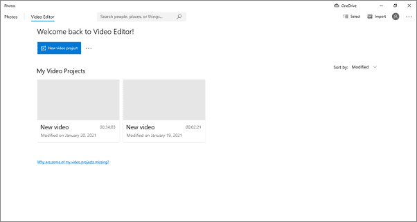 You can start editing a new video by clicking on ‘New video project’ or pick up from where you left the last time by selecting a video under ‘My Video Projects’.