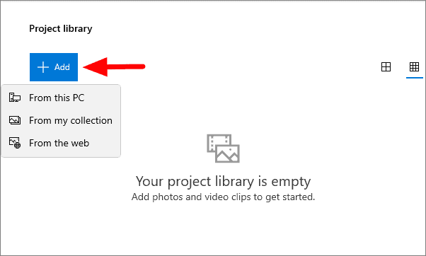To start editing a video, click on ‘Add’ and then select one of three options from the menu. If you have the video on your system, click on ‘From this PC’, browse and select the video