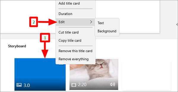To make other changes right-click on the title card and then select ‘Edit’ from the menu. You can now choose whether you want to add text or change the background of the title card.