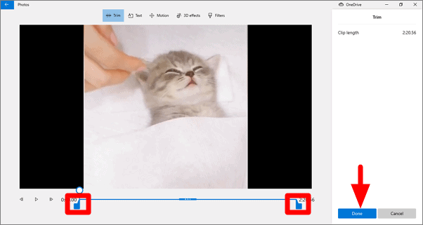 The Video Editor in the photos app will open.