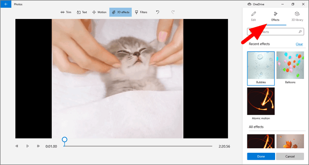 You can add several 3D effects in the Video Editor. To add a 3D effect, click on it in the toolbar and head to the ‘Effects’ section on the 3D effects window. Select the effect you want to apply from the various available options.