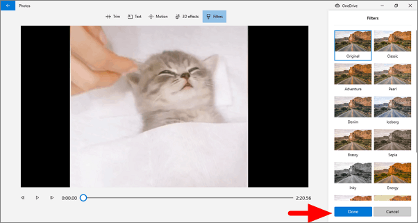 You can select a filter from the options available on the right, see how it works for your video and then click on ‘Done’ to apply the filter.