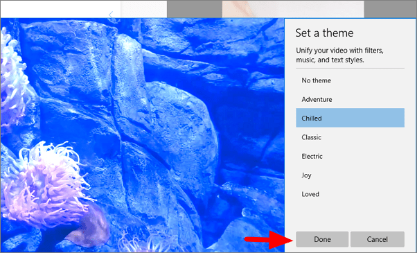 Themes are one of the best features offered by the Video Editor in Photos app. It offers several themes to choose from and can considerably enhance the standard of the video. You must have seen videos online with high-quality graphics, adding a theme will do just that.
