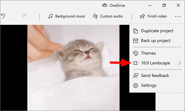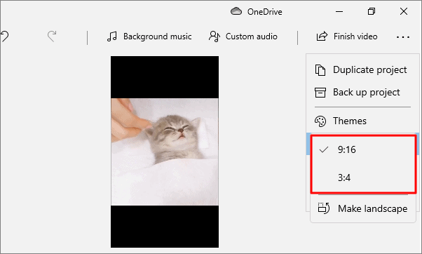 Many users want a video in a particular mode or aspect ratio. In the video editor, you can choose whether you want the video in landscape mode or portrait mode. Once you select a mode, it allows you to pick an aspect ratio. The video is by default set to landscape with an aspect ratio of 16:9.
