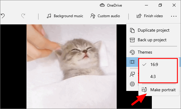 In Landscape mode, which is set by default, you have two options, 16:9 and 4:3. The 16:9 ratio is set by default. To change, click on the other aspect ratio. Moreover, to change the mode to portrait, select the last option, ‘Make portrait’.