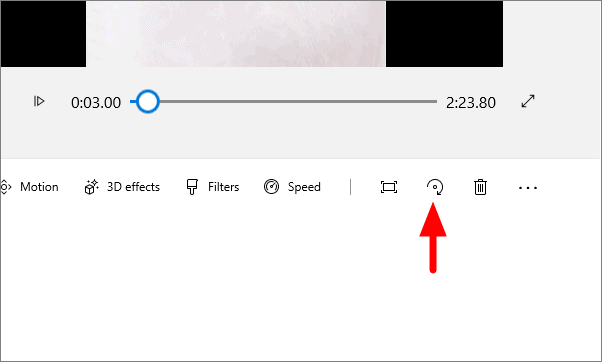 Rotate is the last tool in the storyboard toolbar. When you click on the rotate sign, it rotates the video by 90 degrees in the clockwise direction.