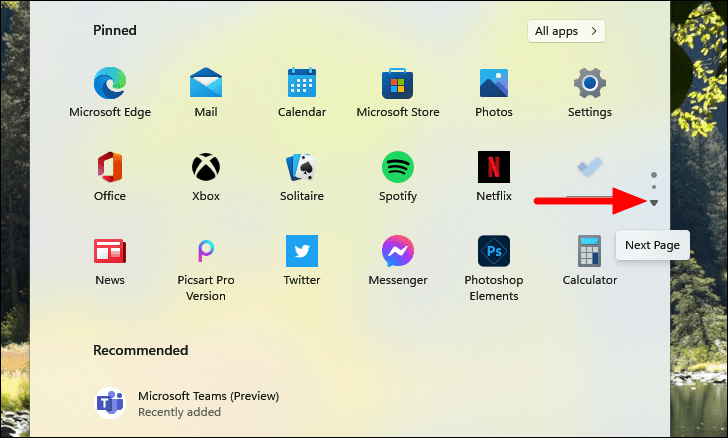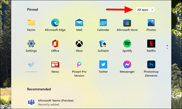 To view all the apps installed on your system, click on the "All apps" button located at the top-right corner of the Pinned section.