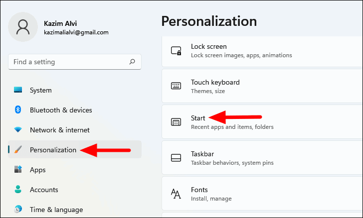 - Click on Start to access Start menu settings.