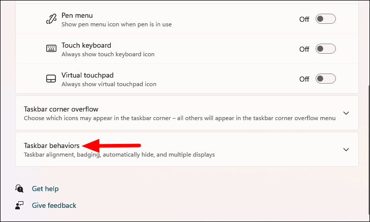 - Scroll down and click on Taskbar behaviors.