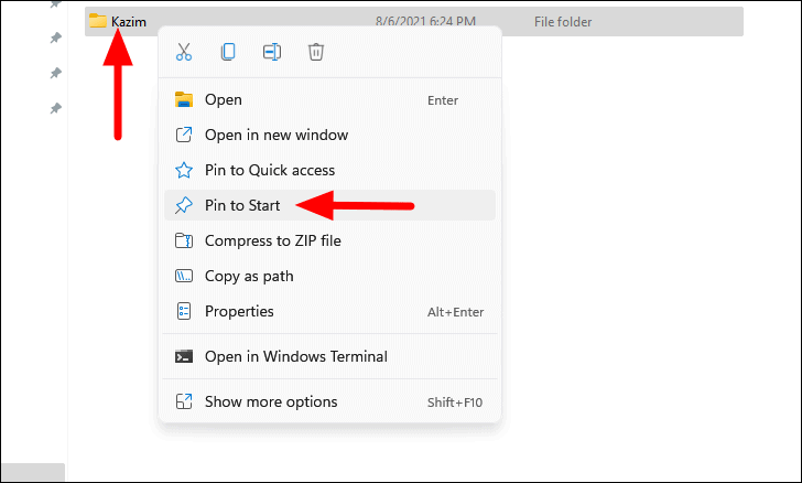 - Right-click on the item you want to pin.
