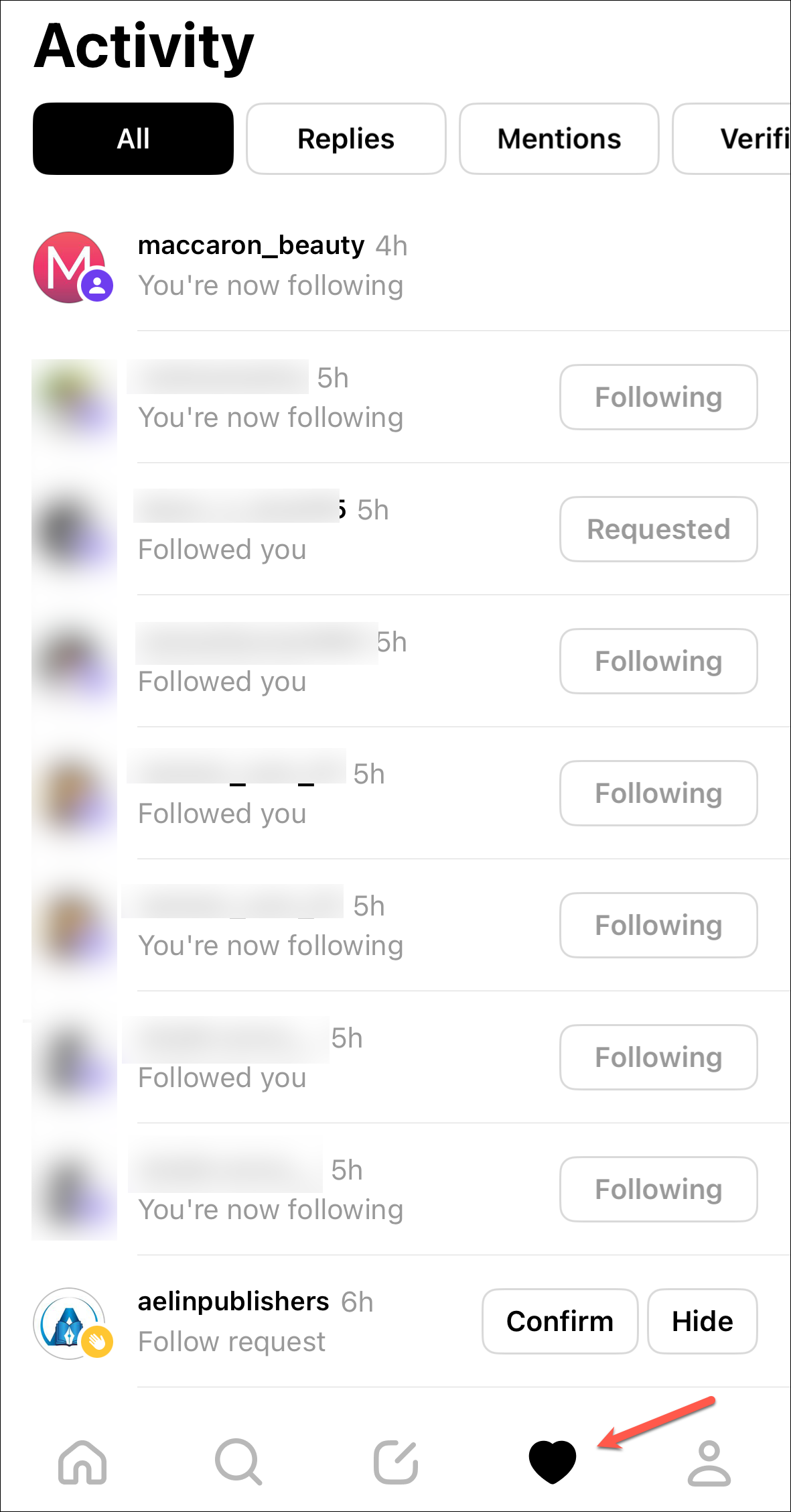 The center button allows you to compose a new thread. The 'Heart' button allows you to view your activity where you can see and approve your follow requests, new followers, replies, mentions, etc.
