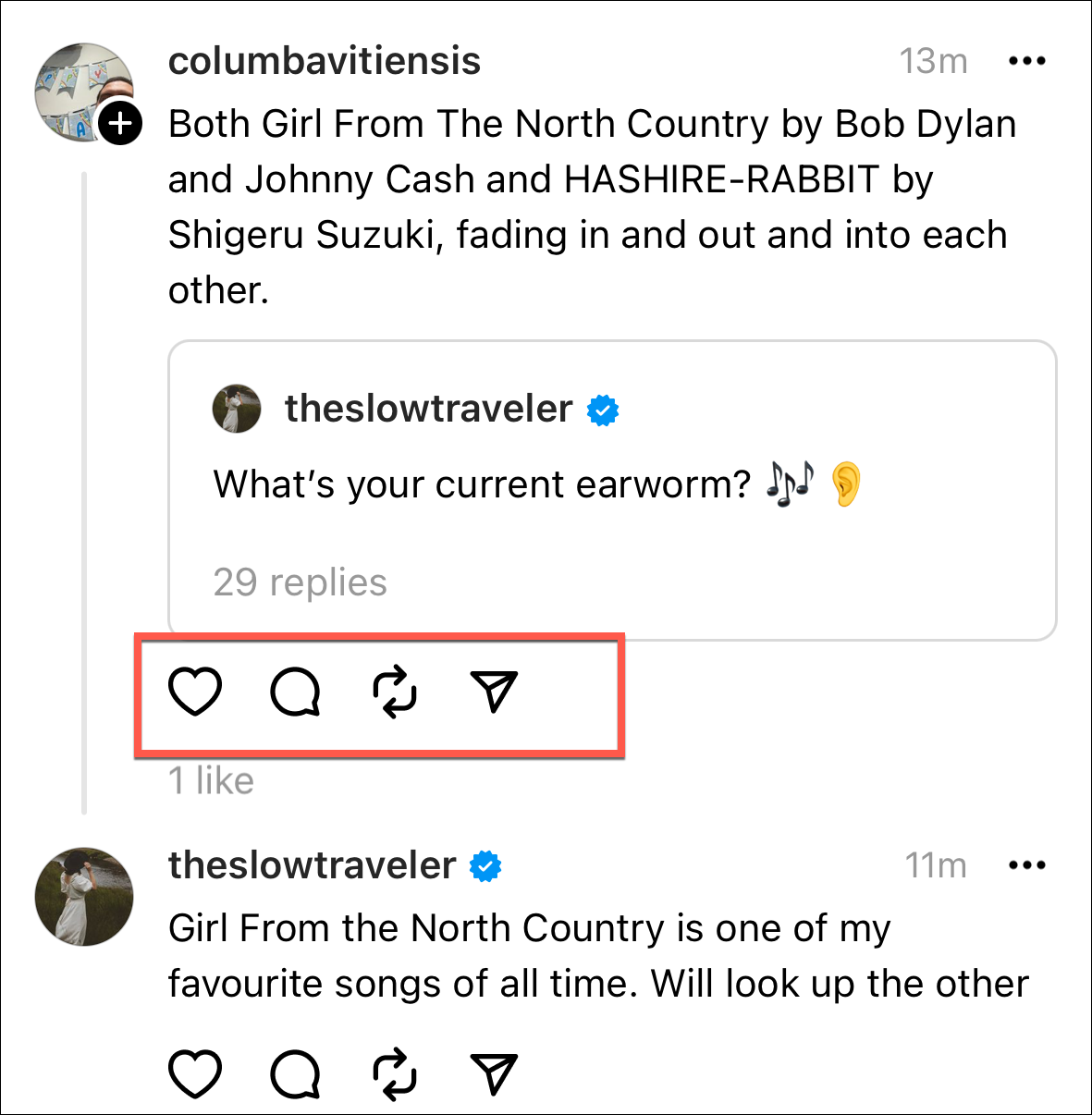 Interactions with other threads are simple. On each thread, you'll find the 'Like', 'Reply', 'Repost', and 'Share' buttons. Like and Reply options are rather self-explanatory. When you reply to a post, anyone can see it in the 'Replies' section of your profile.