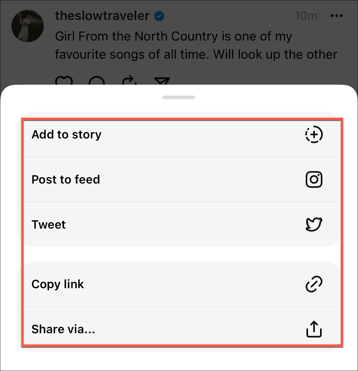 Finally, the Share button houses the options to share a thread to your Instagram story, or Instagram post, Tweet it, copy the link or share it via other apps.
