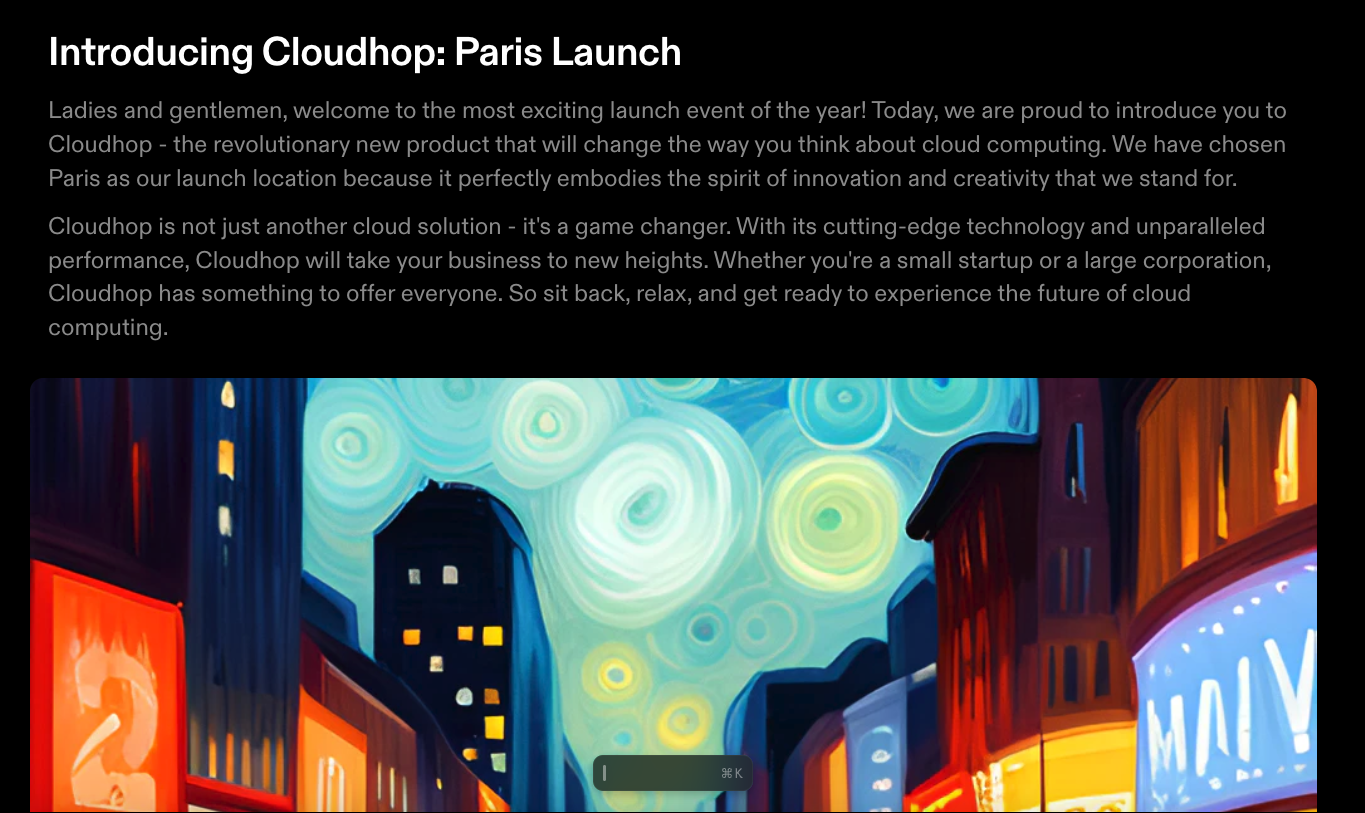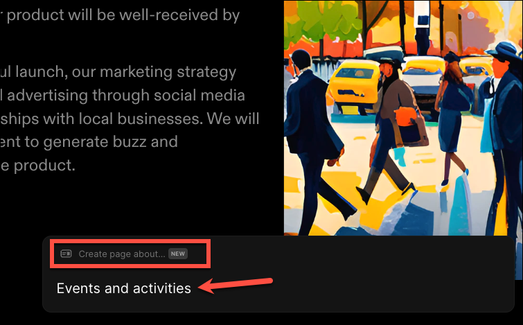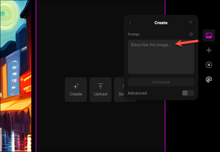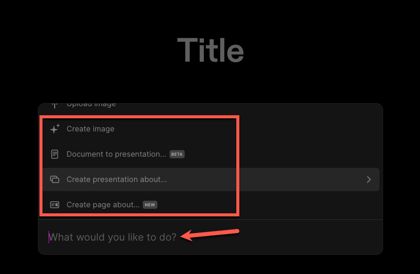 A prompt bar (also known as a command bar) will appear at the bottom of the screen. Now, you can either use AI to generate the content or create it yourself.