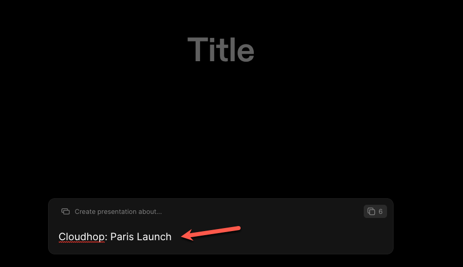 Then, describe the topic of the presentation in the prompt bar. Press 'Enter' to send the prompt to Tome AI.