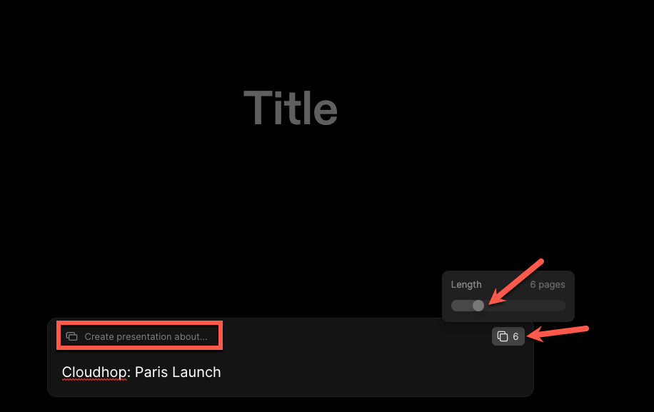 For example, if you select 'Create presentation about' from the options, it will load into the prompt bar. You can then alter the number of slides you want the presentation to have by clicking on the number in the upper-right side of the prompt bar and adjusting the slider from the option that appears.