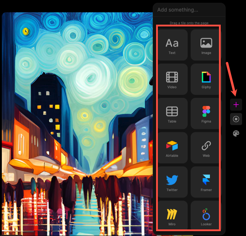 You can not only drag and rearrange the existing tiles but also add new tiles. Click on the '+' icon from the toolbar on the right.