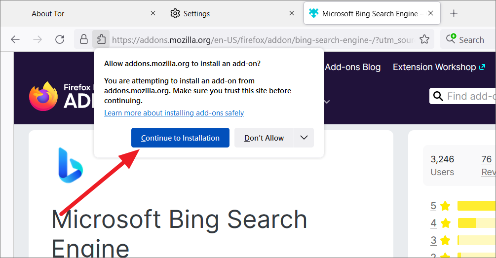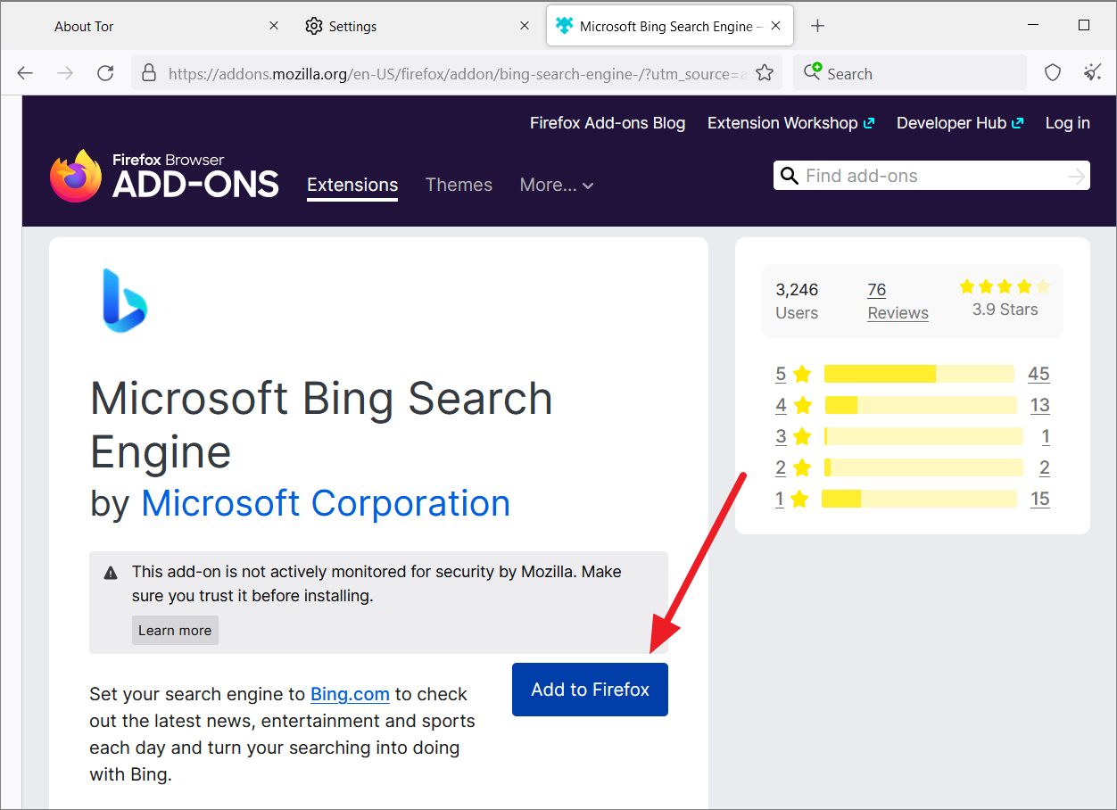 Then, click the ‘Add to Firefox’ button to add the search engine to the Tor browser.